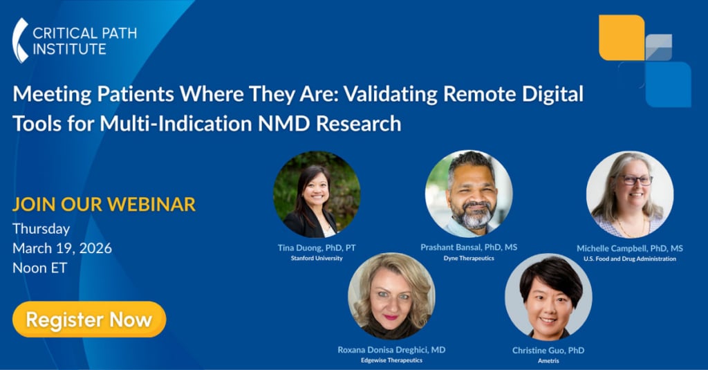 Join us for an upcoming webinar, “Meeting Patients Where They Are: Validating Remote Digital Tools for Multi-Indication NMD Research,” on March 19, 2026 12:00 PM EST featuring Dr. Tina Duong and a panel of experts across industry and regulatory science.