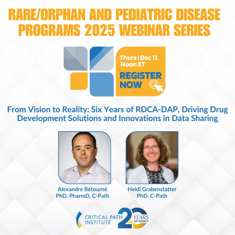 For more information about Rare/Orphan and Pediatric Disease Programs, visit: https://c-path.org/area-of-focus/rare-and-orphan-diseases/.